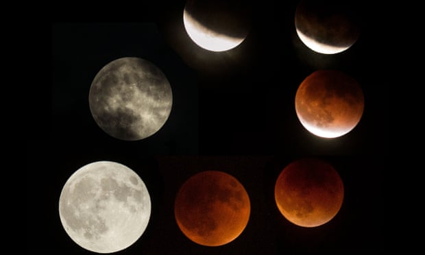 The blood moon, or supermoon, during a total lunar eclipse over Caracas, Venezuela. [Miguel Gutierrez/EPA]